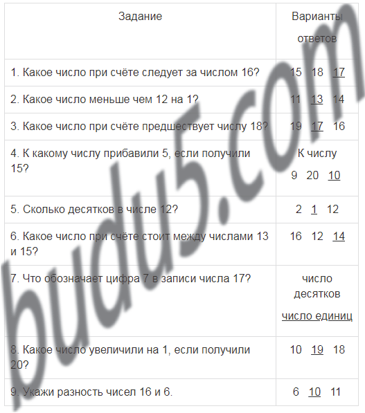 | 1. Какое число при счёте следует за числом 16? | 15 18 17 |