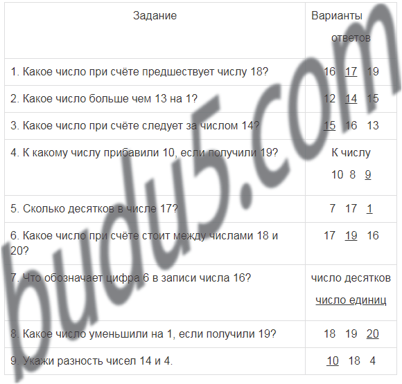 | 1. Какое число при счёте предшествует числу 18? | 16 17 19 |