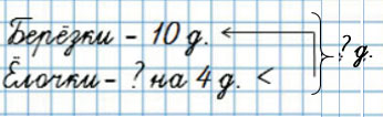 3. На школьном участке посадили 10 берёзок, а ёлочек на 4 меньше.