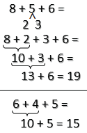 | 6 + 5 | 7 + 5 | 8 + 3 | 17 - 7 - 10 |