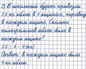 5. В школьный буфет привезли в ящиках 36 кг яблок, по 9 кг в каждом ящике. Сколько ящиков яблок привезли в буфет?