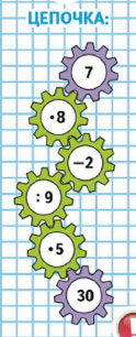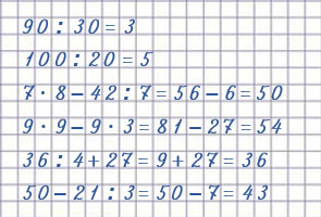 | 90 : 30 | 7 • 8 - 42 : 7 | 36 : 4 + 27 |