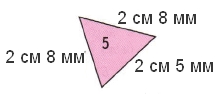 Найди и выпиши номера треугольников, у которых равны хотя бы две стороны.