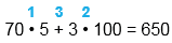 1) 70 • 5 = 350 2) 3 • 100 = 300 3) 350 + 300 = 650 |