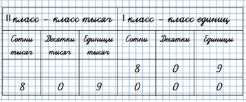 цифра 0 в записи числа 90 обозначает разряд единиц, а в записи числа 90000 − разряд тысяч.