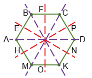 Задание "Проведи в шестиугольнике с равными сторонами все оси симметрии" ученик выполнил так.