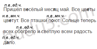 Укажи над глаголами (пришёл, цветут, поют, обогрело, дало) время и число.