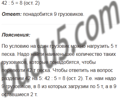 На один грузовик можно нагрузить 5 т песка. Какое наименьшее количество требуется таких грузовиков, чтобы перевезти 42 т песка?