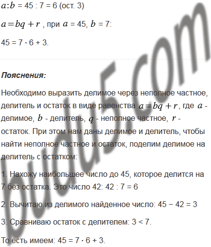 Выразите делимое через неполное частное, делитель и остаток в виде равенства