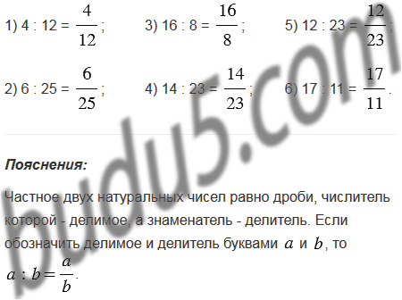 Запишите в виде дроби частное: