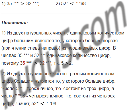 В числах стерли несколько цифр и вместо них поставили звездочки. Сравните эти числа: