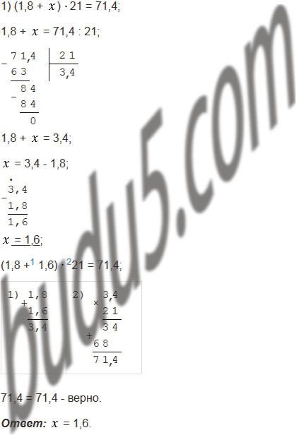1) (1,8 + )21 = 71,4;                 7) 5,6 : ( - 6) = 8;