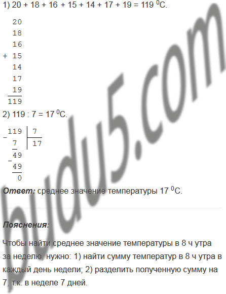 В течение недели в 8 ч утра Саша измерял температуру воздуха. Он получил такие результаты: 20 0С; 18 0С; 16 0С; 15 0С; 14 0С; 17 0С; 19 0С. Найдите среднее значение проведенных измерений.