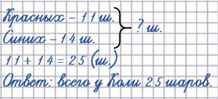 У Коли 11 красных шаров и 14 синих. Сколько всего шаров у Коли?