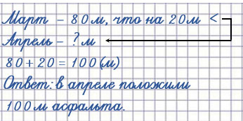 В марте положили 80 м асфальта, что на 20 м меньше, чем в апреле. Сколько метров асфальта положили в апреле?