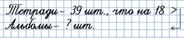3) В магазине купили 39 тетрадей, это на 18 больше, чем альбомов. Сколько купили альбомов?