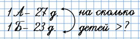 5) В 1 А учится 27 детей, а в 1 Б - 23 ребёнка. На сколько больше детей учится в 1 А, чем в 1 Б?