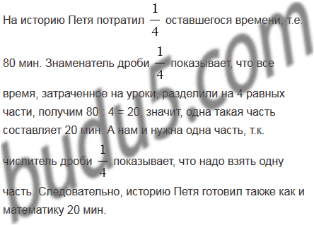 Петя готовил уроки 1 ч 40 мин. На математику он потратил
