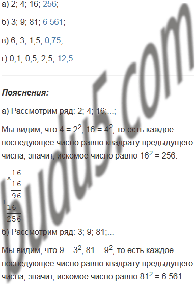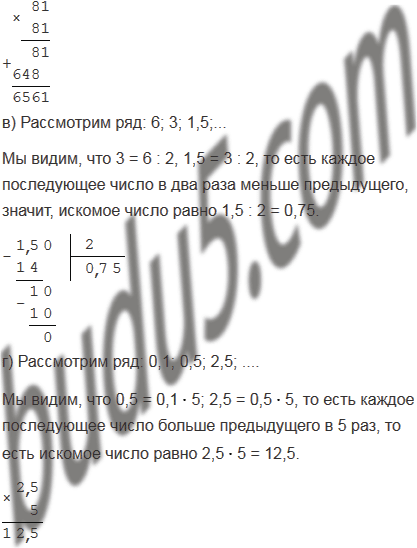 б) 3; 9; 81; ?;              г) 0,1; 0,5; 2,5; ?.