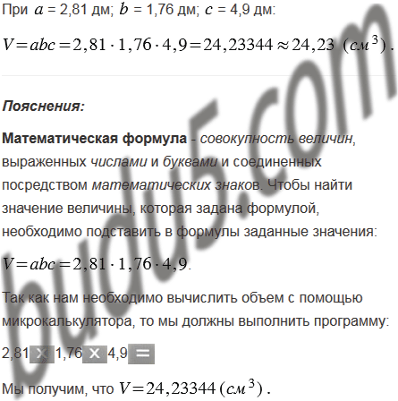 Найдите с помощью микрокалькулятора объём прямоугольного параллелепипеда по формуле