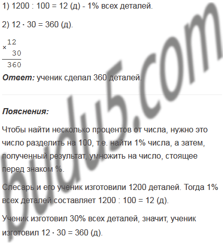 Слесарь и его ученик изготовили 1200 деталей. Ученик сделал 30% всех деталей. Сколько деталей сделал ученик?