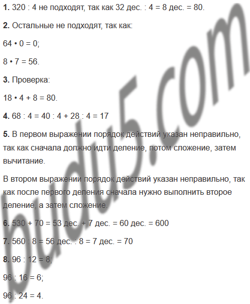 | 3. Укажи частное и остаток, которые получатся при делении 80 на 18. | 4 (ост. 8) 3 (ост. 26) 5 (ост. 10) |
