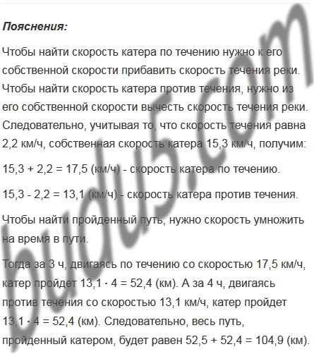 Скорость течения 2,2 км/ч. Собственная скорость катера 15,3 км/ч. Какой путь прошел катер, если по течению он шел 3 ч, а против течения 4 ч?