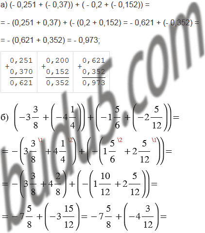 а) (- 0,251 + (- 0,37)) + ( - 0,2 + (- 0,152));