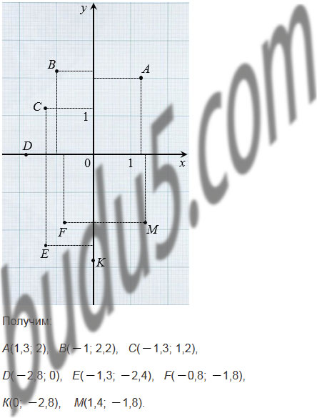 На миллиметровой бумаге (рис. 118) отмечены точки А, В, С, D, Е, F, К и М. Найдите их координаты.
