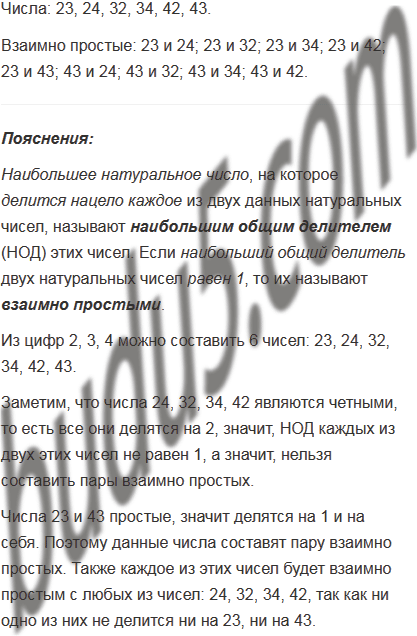 Используя цифры 2, 3, 4, запишите все возможные двузначные числа (цифры в каждом двузначном числе должны быть различными). Из полученных чисел выпишите пары взаимно простых чисел.