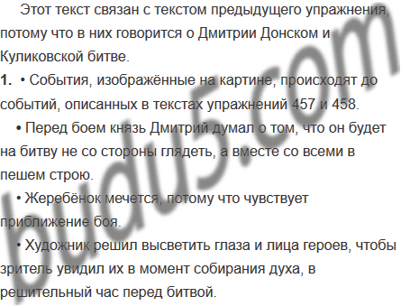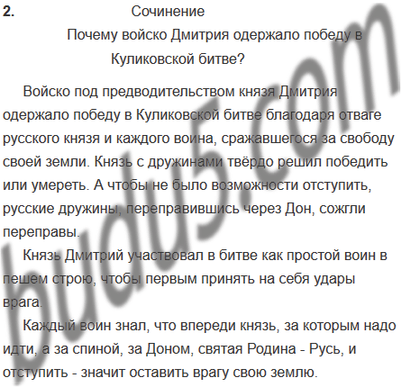 2. Как вы думаете, почему войско под предводительством князя Дмитрия одержало победу в Куликовской битве? Напишите небольшое сочинение об этом. Используйте материал этого упражнения и упражнения 457.