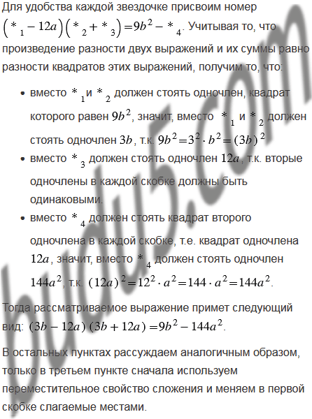 Какие одночлены надо поставить вместо звездочек, чтобы выполнялось тождество: