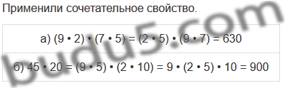 | б) 45 • 20 = (9 • 5) • (2 • 10) = 9 • (2 • 5) • 10 |