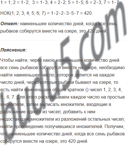 (Старинная болгарская задача.) Семь рыбаков ловили на озере рыбу. Первый ловил рыбу ежедневно, второй - через день, третий - через 2 дня и т.д., седьмой - через 7 дней. Сегодня все рыбаки пришли на озеро. Через какое наименьшее количество дней все семь рыбаков соберутся вместе на озере?