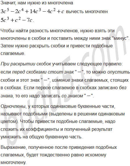 Какой многочлен надо вычесть из многочлена , чтобы их разность была тождественно равна многочлену ?