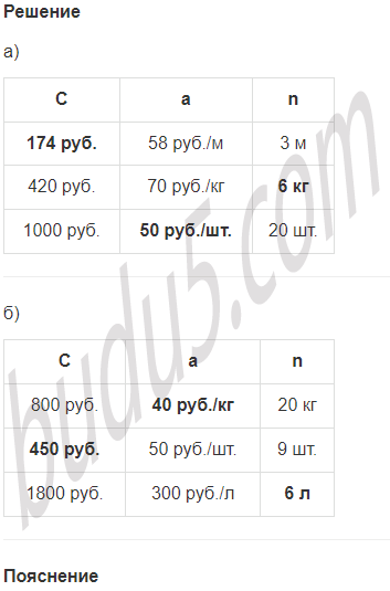 Повтори денежную единицу - рубль, единицу массы - килограмм, единицу длины - метр, а также взаимосвязь между ценой, количеством и стоимостью.