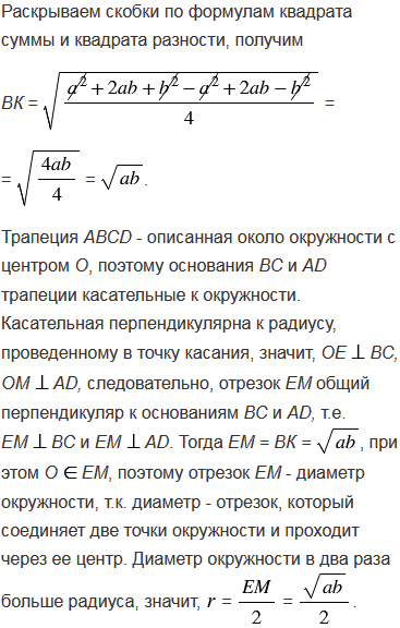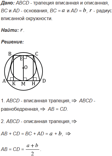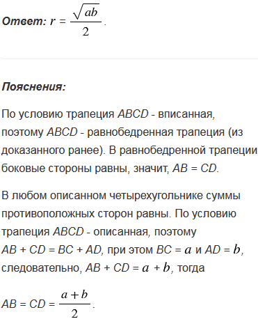 можно вписать окружность и около этой трапеции можно описать окружность. Найдите радиус вписанной окружности.
