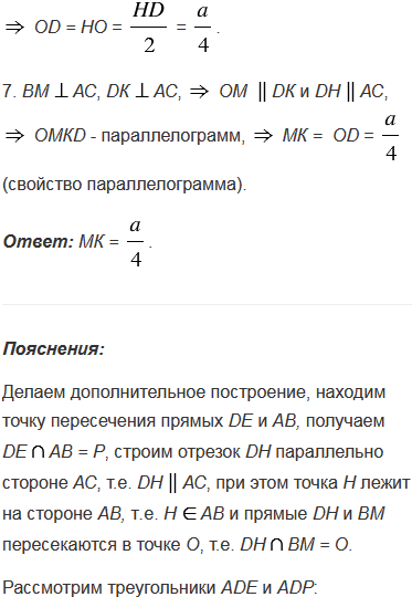 В равнобедренном треугольнике АВС с основанием АС проведена биссектриса АD. Прямая, проведенная через точку D перпендикулярно к АD, пересекает АС в точке Е. Точки М и К - основания перпендикуляров, проведенных из точек В и D к прямой АС. Найдите МК, если АЕ =