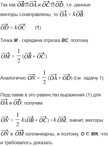 Приведите пример применения векторов к решению геометрических задач.