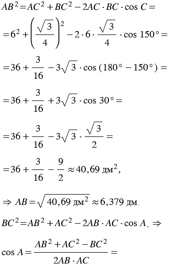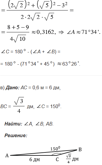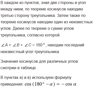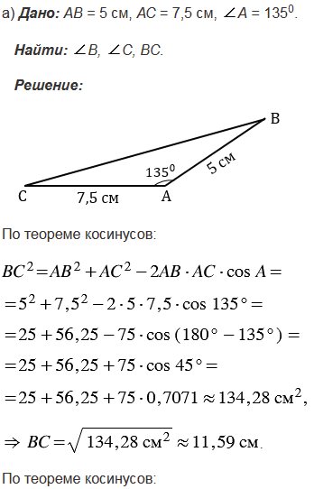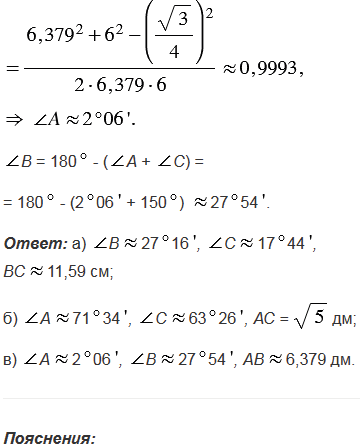 Используя теорему косинусов, решите треугольник АВС, если:
