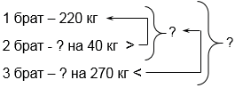 Первый и второй брат вместе собрали на 270 кг больше, чем третий брат, то есть третий брат собрал на 270 кг меньше, чем первый и второй вместе, значит, третий брат собрал: