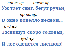 Глаголы: тает, бегут, повеяло, засвищут, оденется, оденет, играть, бегать, будут.