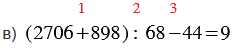 в) (2706 + 898) : 68 - 44;