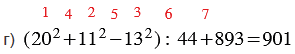 г) (202 + 112 - 132) : 44 + 893;