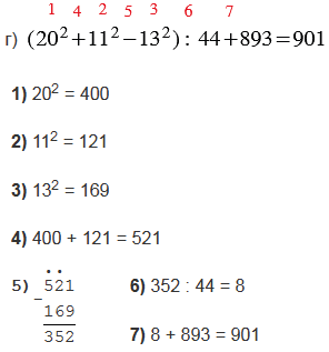 г) (202 + 112 - 132) : 44 + 893;