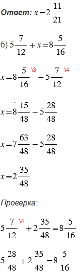 При решении уравнений помним, чтобы найти неизвестное слагаемое, нужно из суммы вычесть известное слагаемое. Чтобы выполнить проверку решения уравнения, нужно в исходное уравнение подставить вместо переменной числовое значение, которое получилось при решении уравнения, и выполнить вычисления в левой части полученного выражения, если после вычислений левая и правая части выражения получились одинаковыми, то уравнение решено верно и найденное значение переменной является корнем рассматриваемого уравнения.