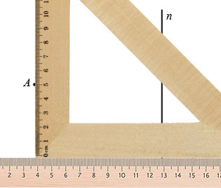 , которая проходит через данную точку А, с помощью треугольника и линейки. Пусть нам дана прямая